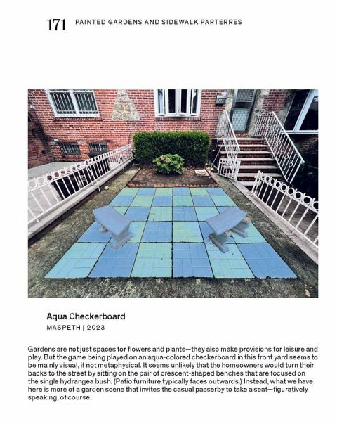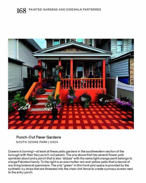 In seinem zweiten Buch über die traditionelle urbane Architektur von Queens, New York, widmet sich Rafael Herrin-Ferri den Grünräumen, die an die Gebäude und kleinen Mehrfamilienhäuser des kulturell reichen Stadtbezirks anschließen. So variantenreich und farbenfroh wie die Fassaden in All the Queens Houses, verleihen diese Gärten dem Straßenbild eine organische, botanische Nuance. Akribisch angelegte Rasenflächen im französischen und italienischen Stil finden sich hier Seite an Seite mit improvisierten Lauben chinesischer Gemüsegärten, karibischen Blumenbeeten, in hinduistischer Tradition farbenfroh gestalteten Innenhöfen, kunstvoll handgefertigten Wasserspielen, lebensgroßen Nachbildungen von Tieren und allerlei anderen Zeugnissen persönlicher Eigenarten und kultureller Vielfalt. In Fotografie und Text zeichnet das Buch ein weiteres Bild - dieses Mal ein sanfteres und grüneres - des dynamischen und multikulturellen Stadtraums von Queens.