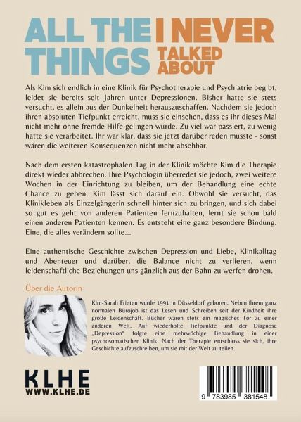 Ein authentischer Weg aus der Depression: Zwischen Klinikalltag, Liebe und Selbstfindung Als Kim sich endlich in eine Klinik für Psychotherapie und Psychiatrie begibt, leidet sie bereits seit Jahren unter Depressionen. Bisher hatte sie stets versucht, es allein aus der Dunkelheit herauszuschaffen. Nachdem sie jedoch ihren absoluten Tiefpunkt erreicht, muss sie einsehen, dass es ihr dieses Mal nicht mehr ohne fremde Hilfe gelingen würde. Zu viel war passiert, zu wenig hatte sie verarbeitet. Ihr war klar, dass sie jetzt darüber reden musste - sonst wären die weiteren Konsequenzen nicht mehr absehbar. Nach dem ersten katastrophalen Tag in der Klinik möchte Kim die Therapie direkt wieder abbrechen. Ihre Psychologin überredet sie jedoch, zwei weitere Wochen in der Einrichtung zu bleiben, um der Behandlung eine echte Chance zu geben. Kim lässt sich darauf ein. Obwohl sie versucht, das Klinikleben als Einzelgängerin schnell hinter sich zu bringen und sich dabei so gut es geht von anderen Patienten fernzuhalten, lernt sie schon bald einen anderen Patienten kennen. Es entsteht eine ganz besondere Bindung, die alles verändern sollte... Eine authentische Geschichte zwischen Depression und Liebe, Klinikalltag und Abenteuer, und dem Drahtseilakt zwischen zwischenmenschlichen Beziehungen und völlig neuen Blickwinkeln. Kim Frieten liefert mit ihrer persönlichen Geschichte einen entwaffnend ehrlichen Einblick in ihre Zeit in einer Klinik für Psychotherapie und Psychiatrie - und in all die Gründe, die sie überhaupt erst in die Klinik gebracht hatten: Dass ihr Vater sie verlassen hatte, dass sie einen sexuellen Übergriff erleben musste, ihre drei großen, aber schmerzhaft gescheiterten Liebesbeziehungen. Und darüber, dass sie sich schon so lange wertlos, taub und verloren fühlte und manchmal das Gefühl hatte, dass es einfacher wäre, nicht mehr da zu sein. Dieses Buch nimmt Dich mit auf eine Reise in ein Gefühl-Wirrwar, mit dem sich nicht nur Menschen mit psychischen Problemen gegenüberstehen! "Meine Geschichte handelt von Liebe - von den drei großen Beziehungen, die ich bisher erlebt habe und natürlich von John. Aber auch von Schmerz und davon, dass das Leben manchmal hart sein kann. Es geht um die Reise zu mir selbst. Wie ich wieder gesund geworden und über mich hinausgewachsen bin. Und dass das alles ist, was zählt. Der Grund, wieso ich dieses Buch geschrieben habe, ist, dass ich mit meiner Geschichte dazu beitragen möchte, auf mentale Krankheiten aufmerksam zu machen. Vor allem möchte ich klarstellen, dass man sich nicht dafür schämen sollte, wenn man psychische Probleme hat. Ich möchte anderen Menschen, die Ähnliches erlebt oder durchgemacht haben, Hoffnung geben und Mut machen. Ich möchte zeigen, dass man sich nicht für immer so fühlen muss, dass man wieder gesund werden kann. Und dass man sich Hilfe suchen kann und sollte, wenn man sie benötigt. Als ich Depressionen hatte und mich in dieser Situation befand, hätte es mir geholfen, diese Geschichte zu lesen und zu wissen, dass ich nicht allein bin. Deswegen möchte ich nun meine Geschichte teilen." - Kim Frieten ' Dieses Buch ist mutig, schonungslos offen, berührend und gleichzeitig mit einer Prise Humor versehen. ' ' Diese Lektüre wird berühren. '
