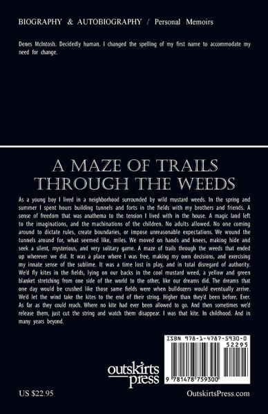 As a young boy I lived in a neighborhood surrounded by wild mustard weeds. In the spring and summer I spent hours building tunnels and forts in the fields with my brothers and friends. A sense of freedom that was anathema to the tension I lived with in the house. A magic land left to the imaginations, and the machinations of the children. No adults allowed. No one coming around to dictate rules, create boundaries, or impose unreasonable expectations. We wound the tunnels around for, what seemed like, miles. We moved on hands and knees, making hide and seek a silent, mysterious, and very solitary game. A maze of trails through the weeds that ended up wherever we did. It was a place where I was free, making my own decisions, and exercising my innate sense of the sublime. It was a time lost in play, and in total disregard of authority. We'd fly kites in the fields, lying on our backs in the cool mustard weed, a yellow and green blanket stretching from one side of the world to the other, like our dreams did. The dreams that one day would be crushed like those same fields were when bulldozers would eventually arrive. We'd let the wind take the kites to the end of their string. Higher than they'd been before. Ever. As far as they could reach. Where no kite had ever been allowed to go. And then sometimes we'd release them, just cut the string and watch them disappear. I was that kite. In childhood. And in many years beyond.