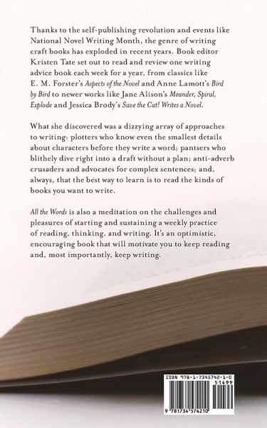 If you read one book about writing every week for a year, what would you learn? Thanks to the self-publishing revolution and events like National Novel Writing Month, the genre of writing craft books has exploded in recent years. Book editor Kristen Tate set out to read and review one writing advice book each week for a year, from classics like E. M. Forster’s Aspects of the Novel and Anne Lamott’s Bird by Bird to newer works like Jane Alison’s Meander, Spiral, Explode and Jessica Brody’s Save the Cat! Writes a Novel. What she discovered was a dizzying array of approaches to writing: plotters who know even the smallest details about characters before they write a word; pantsers who blithely dive right into a draft without a plan; anti-adverb crusaders and advocates for complex sentences; and, always, that the best way to learn is to read the kinds of books you want to write. All the Words is also a meditation on the challenges and pleasures of starting and sustaining a weekly practice of reading, thinking, and writing. It’s an optimistic, encouraging book that will motivate you to keep reading and, most importantly, keep writing.