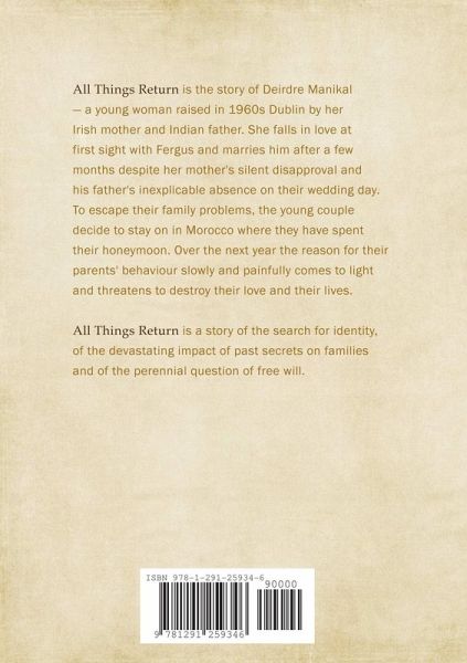 Set in Ireland, Morocco and India in the late 1960s, All Things Return is the story of a young couple's heartbreaking voyage of discovery, of the devastating consequences of family secrets and sins and of the perennial questions of free will and destiny.