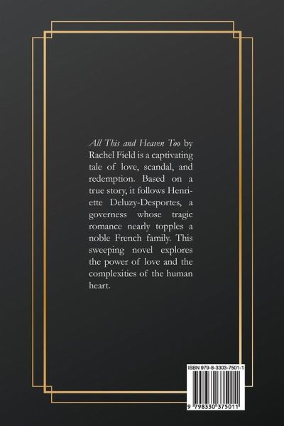 All This and Heaven Too by Rachel Field is a captivating tale of love, scandal, and redemption. Based on a true story, it follows Henriette Deluzy-Desportes, a governess whose tragic romance nearly topples a noble French family. This sweeping novel explores the power of love and the complexities of the human heart.