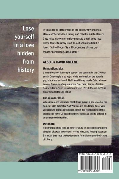 The epic gay Civil War saga continues in this second installment in the award-winning Unmentionables book series. In All to Pieces you'll meet colorful new characters and revisit some of the characters you met in Book 1. Warning: Spoilers ahead if you haven't read book 1. All to Pieces begins in 1862 just a few months after Unmentionables ends. Jimmy and Cato face a major test of their relationship when events take each of them on a journey deep into slave territory.