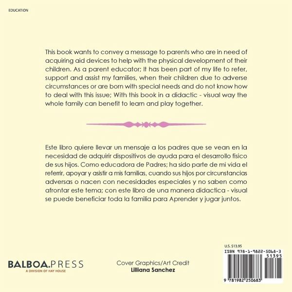This book wants to convey a message to parents who are in need of acquiring aid devices to help with the physical development of their children. As a parent educator; It has been part of my life to refer, support and assist my families, when their children due to adverse circumstances or are born with special needs and do not know how to deal with this issue; With this book in a didactic - visual way the whole family can benefit to learn and play together. Este libro quiere llevar un mensaje a los padres que se vean en la necesidad de adquirir dispositivos de ayuda para el desarrollo fisico de sus hijos. Como educadora de Padres; ha sido parte de mi vida el referrir, apoyar y asistir a mis familias, cuando sus hijos por circunstancias adversas o nacen con necesidades especiales y no saben como afrontar este tema; con este libro de una manera didactica - visual se puede beneficiar toda la familia para Aprender y jugar juntos.