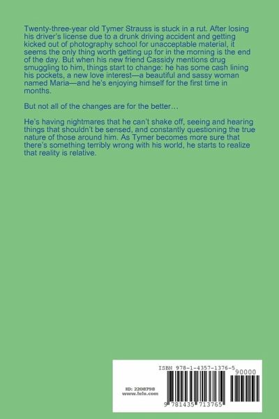 Twenty-three-year old Tymer Strauss is stuck in a rut. After losing his driver's license due to a drunk driving accident and getting kicked out of photography school for unacceptable material, it seems the only thing worth getting up for in the morning is the end of the day. But when his new friend Cassidy mentions drug smuggling to him, things start to change: he has some cash lining his pockets, a new love interest-a beautiful and sassy woman named Maria-and he's enjoying himself for the first time in months. But not all of the changes are for the better. He's having nightmares that he can't shake off, seeing and hearing things that shouldn't be sensed, and constantly questioning the true nature of those around him. As Tymer becomes more sure that there's something terribly wrong with his world, he starts to realize that reality is relative.