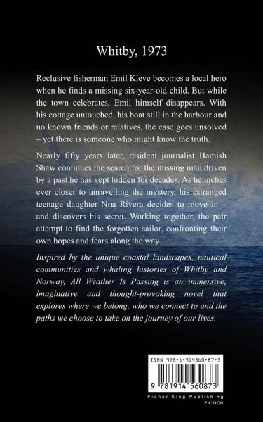 Whitby, 1973. Reclusive fisherman Emil Kleve becomes a local hero when he finds a missing six-year-old child. But while the town celebrates, Emil himself disappears. With his cottage untouched, his boat still in the harbour and no known friends or relatives, the case goes unsolved - yet there is someone who might know the truth. Nearly fifty years later, resident journalist Hamish Shaw continues the search for the missing man driven by a past he has kept hidden for decades. As he inches ever closer to unravelling the mystery, his estranged teenage daughter Noa Rivera decides to move in - and discovers his secret. Working together, the pair attempt to find the forgotten sailor, confronting their hopes and fears along the way. Inspired by the unique coastal landscapes, nautical communities and whaling histories of Whitby and Norway, All Weather is Passing is an immersive, imaginative and thought-provoking novel that explores where we belong, who we connect to and the paths we choose to take on the journey of our lives.