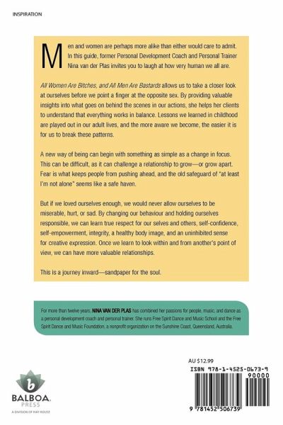 Men and women are perhaps more alike than either would care to admit. In this guide, former Personal Development Coach and Personal Trainer Nina van der Plas invites you to laugh at how very human we all are. All Women Are Bitches, and All Men Are Bastards allows us to take a closer look at ourselves before we point a finger at the opposite sex. By providing valuable insights into what goes on behind the scenes in our actions, she helps her clients to understand that everything works in balance. Lessons we learned in childhood are played out in our adult lives, and the more aware we become, the easier it is for us to break these patterns. A new way of being can begin with something as simple as a change in focus. This can be difficult, as it can challenge a relationship to grow-or grow apart. Fear is what keeps people from pushing ahead, and the old safeguard of "at least I'm not alone" seems like a safe haven. But if we loved ourselves enough, we would never allow ourselves to be miserable, hurt, or sad. By changing our behaviour and holding ourselves responsible, we can learn true respect for our selves and others, self-confidence, self-empowerment, integrity, a healthy body image, and an uninhibited sense for creative expression. Once we learn to look within and from another's point of view, we can have more valuable relationships. This is a journey inward-sandpaper for the soul.