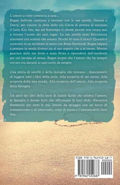 L'amore a volte comincia a casa... Regan Sullivan continua a lavorare con le sue sorelle, Sheena e Darcy, per vincere la sfida dello zio Gavin di portare al successo il Salty Key Inn, ma nel frattempo si chiede perché non riesca mai a trovare l'uomo dei suoi sogni. Le sue sorelle sono felicemente sistemate con uomini che amano. Perché lei non ci riesce? Quando è coinvolta in un incidente in moto con Brian Harwood, Regan impara a pensare in modo diverso sia al suo aspetto che a sé stessa. Mentre guarisce dalle sue ferite e aiuta Brian a riprendersi dall'incidente per cui incolpa sé stessa, Regan scopre che l'amore che ha sempre cercato era davanti ai suoi occhi da sempre. Una storia di sorelle e della famiglia che trovano... Assicuratevi di leggere tutti i libri della serie: Alla scoperta di me stessa, Alla scoperta della mia strada, Alla scoperta dell'amore, Alla scoperta della famiglia. Un altro dei libri della serie di Judith Keim che celebra l'amore, le famiglie e donne forti che affrontano le loro sfide. Narrativa femminile per tutte le età, letture da spiaggia con un tocco di romanticismo e di umorismo, colpi di scena e l'immancabile lieto fine.