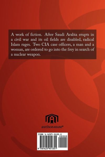 A work of fiction. After Saudi Arabia erupts in a civil war and its oil fields are disabled, radical Islam rages. Two CIA case officers, a man and a woman, are ordered to go into the frey in search of a nuclear weapon.