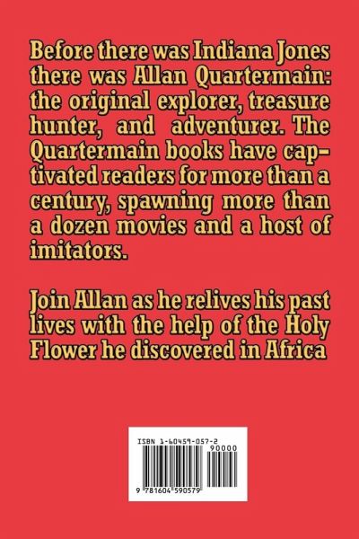 Before there was Indiana Jones there was Allan Quatermain: the original explorer, treasure hunter, and adventurer. The Quatermain books have captivated readers for more than a century, spawning more than a dozen movies and a host of imitators. Join Allan as he relives his past lives with the help of the Holy Flower he discovered in Africa