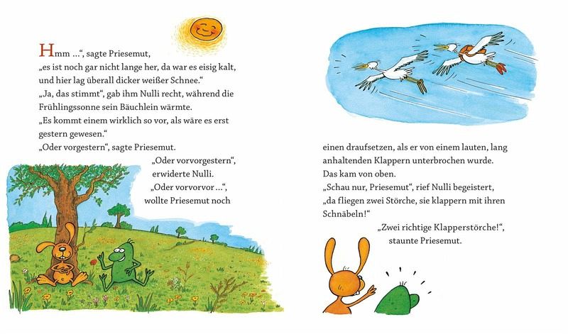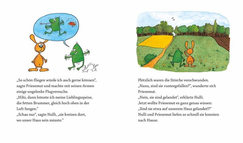 Der Hase Nulli und der Frosch Priesemut machen Bekanntschaft mit zwei hinterlistigen Störchen, die Priesemut das Fliegen beibringen wollen, und lernen, dass man dem besten Freund mehr vertrauen sollte, als einem Fremden.