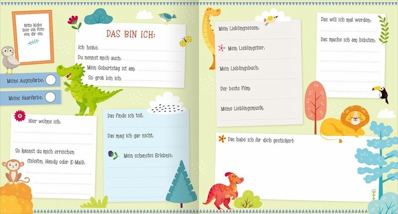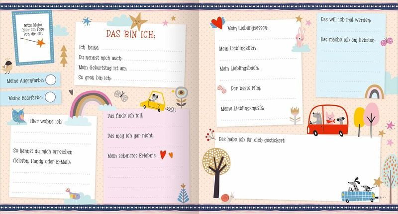 Neben den vielen Stickern und verschieden gestalteten Seiten zum Eintragen gibt es einen Geburtstagskalender, der dich immer an die Geburtstage deiner Kindergarten- und Schulfreunde erinnert, und Platz für viele schöne Fotos von euch. Und - psst! - es gibt sogar eine Seite für geheime Botschaften und Notizen!