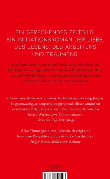 In seinem neuen Buch erzählt Uwe Timm von seinen Lehrjahren als Kürschner im Hamburg der Fünfzigerjahre. Von kuriosen Erlebnissen im Beruf und der Welt der Mode, von besonderen Freundschaften und den Büchern, die sein Leben verändert haben.