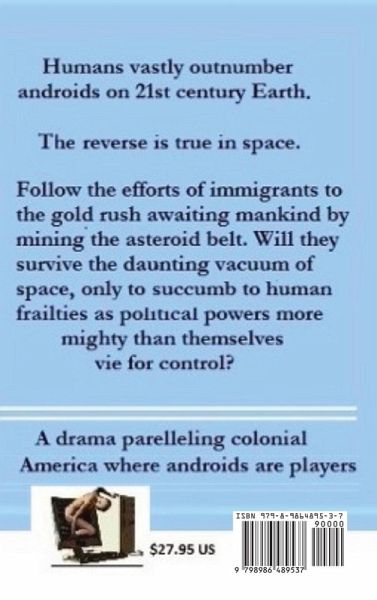 Humans vastly outnumber androids on 21st century Earth. In space, the reverse is true. Colonists and androids strive in a gold rush awaiting mankind mining the asteroid belt. Will they survive the daunting vacuum of space only to succumb to human frailties as political powers more mighty than themselves vie for control?