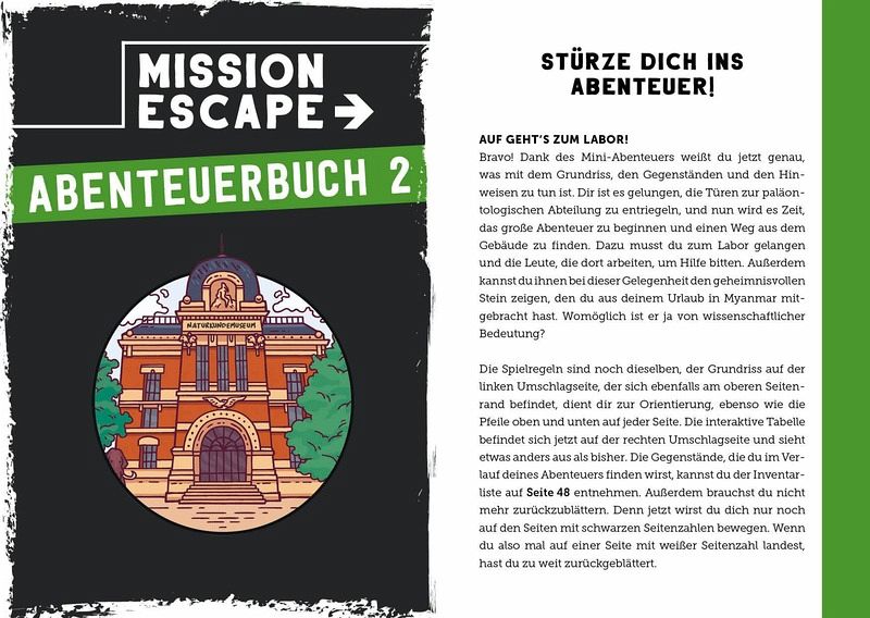 Gefangen in einem Museum! Du bist in großer Gefahr und musst auf deinem Weg in die Freiheit tückische Fallen überlisten. In dieser interaktiven Geschichte mit kniffligen Rätseln und spannenden Geheimnissen erwarten dich unglaubliche Abenteuer. Die ausklappbare Übersichtskarte und der Decoder helfen dir bei der Lösung. Mit diesem Spiele-Trend in Buchform kommt echtes Live-Escape-Feeling auf - und das Beste: Mission Escape kann immer wieder neu gespielt werden! Egal, ob alleine oder mit Freunden - schlag die erste Seite auf und los geht's!