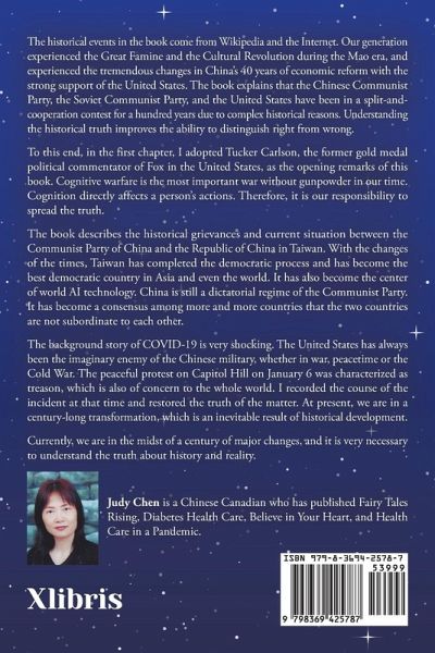 The historical events in the book come from Wikipedia and the Internet. Our generation experienced the Great Famine and the Cultural Revolution during the Mao era, and experienced the tremendous changes in China's 40 years of economic reform with the strong support of the United States. The book explains that the Chinese Communist Party, the Soviet Communist Party, and the United States have been in a split-and-cooperation contest for a hundred years due to complex historical reasons. Understanding the historical truth improves the ability to distinguish right from wrong. To this end, in the first chapter, I adopted Tucker Carlson, the former gold medal political commentator of Fox in the United States, as the opening remarks of this book. Cognitive warfare is the most important war without gunpowder in our time. Cognition directly affects a person's actions. Therefore, it is our responsibility to spread the truth. The book describes the historical grievances and current situation between the Communist Party of China and the Republic of China in Taiwan. With the changes of the times, Taiwan has completed the democratic process and has become the best democratic country in Asia and even the world. It has also become the center of world AI technology. China is still a dictatorial regime of the Communist Party. It has become a consensus among more and more countries that the two countries are not subordinate to each other. The background story of COVID-19 is very shocking. The United States has always been the imaginary enemy of the Chinese military, whether in war, peacetime or the Cold War. The peaceful protest on Capitol Hill on January 6 was characterized as treason, which is also of concern to the whole world. I recorded the course of the incident at that time and restored the truth of the matter. At present, we are in a century-long transformation, which is an inevitable result of historical development. Currently, we are in the midst of a century of major changes, and it is very necessary to understand the truth about history and reality.