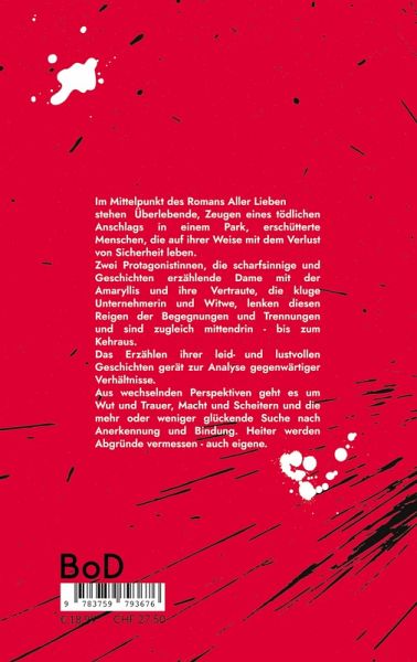 Im Mittelpunkt des Romans Aller Lieben stehen Überlebende, Zeugen eines tödlichen Anschlags in einem Park, erschütterte Menschen, die auf ihrer Weise mit dem Verlust von Sicherheit leben. Zwei Protagonistinnen, die scharfsinnige und Geschichten erzählende Dame mit der Amaryllis und ihre Vertraute, die kluge Unternehmerin und Witwe, lenken diesen Reigen der Begegnungen und Trennungen und sind zugleich mittendrin - bis zum Kehraus. Das Erzählen ihrer leid- und lustvollen Geschichten gerät zur Analyse gegenwärtiger Verhältnisse. Aus wechselnden Perspektiven geht es um Wut und Trauer, Macht und Scheitern und die mehr oder weniger glückende Suche nach Anerkennung und Bindung. Heiter werden Abgründe vermessen - auch eigene.