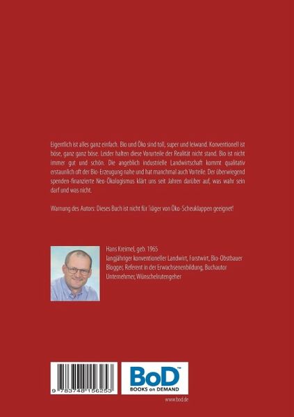 Eigentlich ist alles ganz einfach. Bio und Öko sind toll, super und leiwand. Konventionell ist böse, ganz ganz böse. Leider halten diese Vorurteile der Realität nicht stand. Bio ist nicht immer gut und schön. Die angeblich industrielle Landwirtschaft kommt qualitativ erstaunlich oft der Bio-Erzeugung nahe und hat oft auch Vorteile gegenüber Bio. Warnung des Autors: Dieses Buch ist nicht für Träger von Öko-Scheuklappen geeignet!