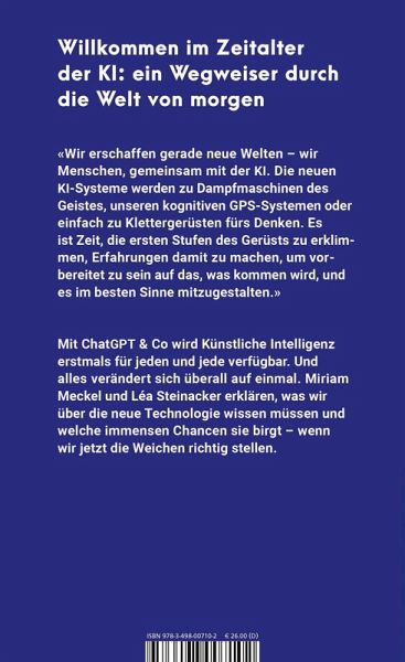 Wenn wir in einer immer komplexeren Welt mithalten wollen, so Meckel und Steinacker, dann müssen wir auch unsere menschliche Intelligenz erweitern - selbst dabei kann künstliche Intelligenz uns helfen. Auch wir werden uns also verändern. Wie sieht die Welt von morgen aus, wie finden wir uns darin zurecht und entscheiden richtig? Dieses Buch weist den Weg.
