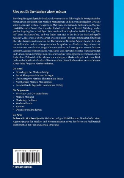 Eine langfristig erfolgreiche Marke zu kreieren und zu führen gilt als Königsdisziplin. Neben einem professionellen Markenmanagement und einer ausgeklügelten Strategie spielen aber auch Geduld, Neugier und Mut eine entscheidende Rolle auf dem Weg zur marktführenden Brand. Doch was heißt das konkret in der Praxis? Welche grundlegenden Regeln gilt es zu befolgen? Was machen Ikea, Apple oder Red Bull richtig? Wer hilft beim Markenaufbau, und wie findet man sich in der Fülle der Markenbegriffe zurecht? "Alles, was Sie über Marken wissen müssen" gibt einen fundierten Überblick über alles Wissenswerte rund um das Thema Marke. Nicholas Adjouri beschreibt leicht nachvollziehbar und an vielen praktischen Beispielen, was Marken erfolgreich macht, wie man eine neue Marke zielgerichtet entwickelt und managt und warum Marken scheitern. Adjouri erläutert zudem, wie Markt- und Markenforschung, Werbeagenturen und Unternehmensberatungen einen Markenaufbau wirkungsvoll unterstützen können.Außerdem: Zahlreiche Checklisten, die wichtigsten Marken-Regeln auf einen Blick und ein abschließendes Marken-Glossar machen dieses Buch zu einer unverzichtbaren Arbeitshilfe für jeden Markenpraktiker.
