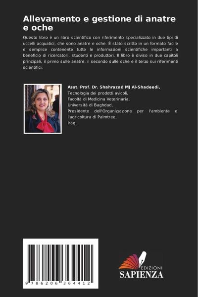 Questo libro è un libro scientifico con riferimento specializzato in due tipi di uccelli acquatici, che sono anatre e oche. È stato scritto in un formato facile e semplice contenente tutte le informazioni scientifiche importanti a beneficio di ricercatori, studenti e produttori. Il libro è diviso in due capitoli principali, il primo sulle anatre, il secondo sulle oche e il terzo sui riferimenti scientifici.