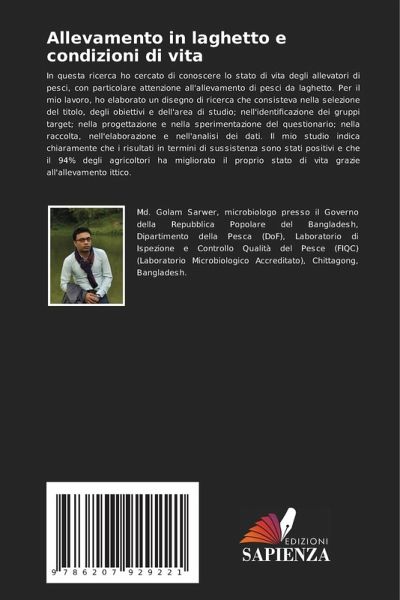 In questa ricerca ho cercato di conoscere lo stato di vita degli allevatori di pesci, con particolare attenzione all'allevamento di pesci da laghetto. Per il mio lavoro, ho elaborato un disegno di ricerca che consisteva nella selezione del titolo, degli obiettivi e dell'area di studio; nell'identificazione dei gruppi target; nella progettazione e nella sperimentazione del questionario; nella raccolta, nell'elaborazione e nell'analisi dei dati. Il mio studio indica chiaramente che i risultati in termini di sussistenza sono stati positivi e che il 94% degli agricoltori ha migliorato il proprio stato di vita grazie all'allevamento ittico.