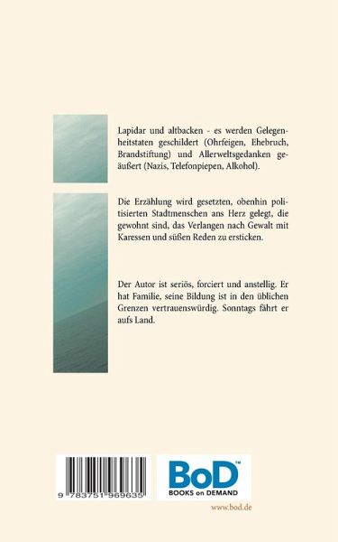 Lapidar und altbacken - es werden Gelegenheitstaten geschildert (Ohrfeigen, Ehebruch, Brandstiftung) und Allerweltsgedanken geäußert (Nazis, Telefonpiepen, Alkohol). Die Erzählung wird dem gesetzten, obenhin politisierten Stadtmenschen ans Herz gelegt.