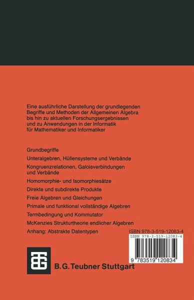 Das vorliegende Lehrbuch wendet sich vor allem an Studenten der Ma thematik, aber auch an Studenten der Informatik und ganz allgemein an mathematisch vorgebildete Leser mit Interesse an moderner Algebra. In erster Linie kann man die Allgemeine Algebra als eine übergreifende Theo rie der verschiedenen algebraischen Einzeldisziplinen (wie z. B. Gruppen-, Ring-und Verbandstheorie) verstehen, in der die diesen Gebieten gemein samen Phänomene und Methoden herausgearbeitet werden. Daruberhinaus hat die Allgemeine Algebra, wie jedes andere eigenständige mathematische Gebiet, ihre eigenen Methoden und Betrachtungsweisen entwickelt. Die ses Buch möchte eine Einführung in grundlegende Begriffe und Ergebnisse der Allgemeinen Algebra geben. Die ersten sieben Kapitel behandeln den Standardstoff einer Einführungsvorlesung in die Allgemeine Algebra. In den beiden restlichen Kapiteln werden dann zwei der faszinierendsten Entwick lungen der letzten Jahre vorgestellt, nämlich die Kommutatortheorieder Allgemeinen Algebra sowie R. McKenzies völlig neuartige Strukturtheorie endlicher Algebren. Die aktuelle Bedeutung der Allgemeinen Algebra liegt aber nicht nur in der Entwicklung interessanter, weitreichender Methoden innerhalb des Gebiets selbst, sondern auch in den engen Verbindungen zu verschiedenen Bereichen der Informatik, so daß Kenntnisse in Allgemeiner Algebra gerade aus Sicht der Informatik nützlich sind. Neue Begriffe werden in diesem Buch nach Möglichkeit erst dort ein geführt, wo sie wirklich benötigt werden. Dadurch soll die Theorie auch für den Anfänger durchschaubar bleiben, und gleich im ersten Kapitel kann mit den Grunddefinitionen der Allgemeinen Algebra begonnen werden, ohne die sonst oft üblichen Vorschübe über Mengen, Hüllensysteme,Verbände oder Kategorien.