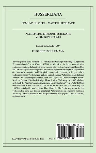 Im vorliegenden Band wird der Text von Husserls Göttinger Vorlesung `Allgemeine Erkenntnistheorie' vom Winter 1902/03 veröffentlicht, in der er erstmals eine phänomenologische Erkenntnistheorie zu entwerfen suchte. Obwohl bei der Darstellung des Psychologismus auf die Prolegomena zurückgreifend, ging er über die Logischen Untersuchungen hinaus in der Herausarbeitung der Zweifellosigkeit der cogitatio, der Analyse der perzeptiven und symbolischen Vorstellungen und der Darstellung der Wahrscheinlichkeit als des Prinzips der Erfahrungserkenntnis. Noch im Februar 1905 beabsichtigte Husserl, diese Vorlesung zu veröffentlichen. Erst durch die `Einführung in die Logik und Erkenntniskritik' vom Winter 1906/07 (veröffentlicht in Husserliana XXIV), in die er teilweise auf die Vorlesung von 1902/03 zurückgriff, wurde dieser Plan überholt. Als Ergänzung wurde in den vorliegenden Band das (einzig erhaltene) Anfangsstück aus Husserls Hallenser Vorlesung `Erkenntnistheorie und Hauptstücke der Metaphysik' (Winter 1898/99) aufgenommen.