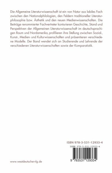 Vorbemerkung.- I. Grundlagen.- Über den Ort der Literatur im Haushalt der Wissenschaften.- Komparatistik im multikulturellen Kontext: Vergleichsgrundlagen.- Comparaison/Vergleichung. Zur Geschichte und Ethik eines komparatistischen Genres.- II. Profile.- Zur 'Erfindung' von Disziplinen gestern und heute - Plädoyer für eine kultur- und metatheoretische Orientierung der 'Allgemeinen und Vergleichenden Literaturwissenschaft'.- Literaturwissenschaft zwischen Autonomie und Heteronomie: Die Herausforderung durch die Sozialwissenschaften.- Allgemeine Literaturwissenschaft - ein Entwurf und die Folgen.- III. Konturen und Perspektiven - Literatur, andere Künste, Neue Medien.- Intermedialität als neues Forschungsparadigma der Allgemeinen Literaturwissenschaft.- Allgemeine Literaturwissenschaft im Gravitationsfeld Neuer Medien und Technologien (mit 99 Titeln zum Thema im Anhang).- Geist - Kultur - Markt. Zur wissenschaftsgeschichtlichen Symptomatologie der Allgemeinen Literaturwissenschaft.- IV. Modelle.- Allgemeine und Vergleichende Literaturwissenschaft - das Essener Modell.- Siegener Modell! - Modell Siegen? Zum Konzept der Allgemeinen Literaturwissenschaft an der Universität-Gesamthochschule Siegen.- Eine Kontextbestimmung der Vergleichenden Literaturwissenschaft - das Beispiel Vanderbilt.- Die Autorinnen und Autoren.