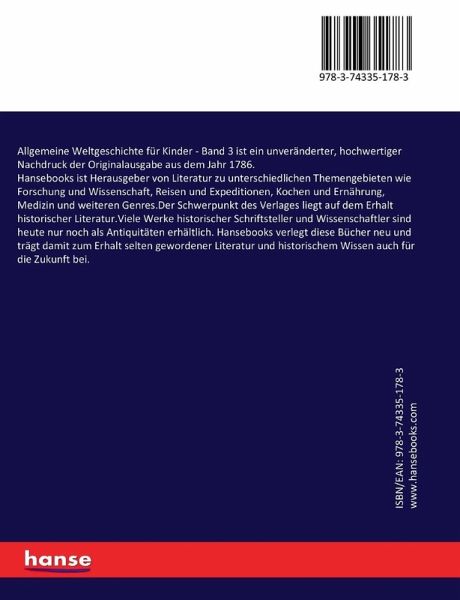 Allgemeine Weltgeschichte für Kinder - Band 3 ist ein unveränderter, hochwertiger Nachdruck der Originalausgabe aus dem Jahr 1786.