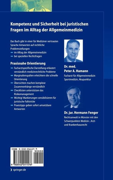 1 Der Behandlungsvertrag in der Allgemeinmedizin.- 1.1 Das Zustandekommen des Vertrages.- 1.2 Beendigung des Vertrages.- 1.3 Pflichten des Allgemeinmediziners.- 1.4 Pflichtendes Patienten.- 1.5 Besondere Situationen.- 2 Die Aufklärung in der Allgemeinmedizin.- 2.1 Selbstbestimmungsaufklärung.- 2.2 Therapeutische Aufklärung.- 2.3 Besondere Bereiche.- 2.4 Art undWeise der Aufklärung.- 2.5 Folgen unzulänglicher Aufklärung.- 3 Die Behandlung in der Allgemeinmedizin.- 3.1 Leistungnach Standard.- 3.2 Richtlinien, Leitlinien und Empfehlungen.- 3.3 Delegation ärztlicher Aufgaben.- 4 Die Dokumentation in der Allgemeinmedizin.- 4.1 Art und Umfangder Dokumentation.- 4.2 Einsichtsrecht des Patienten.- 4.3 Fristen zur Aufbewahrung.- 4.4 Folgen fehlender oder fehlerhafter Dokumentation.- 5 Die Schweigepflicht in der Allgemeinmedizin.- 5.1 Allgemeine Grundlagen.- 5.2 Umfangder Schweigepflicht.- 5.3 Die Schweigepflicht in einzelnen Tätigkeitsbereichen.- 5.4 Wahrung der Schweigepflicht im Alltag.- 5.5 Spezielle Situationen.- 5.6 Rechtsfolgen bei Verletzung der Schweigepflicht.- 6 Der Datenschutz in der Allgemeinmedizin.- 6.1 PersonenbezogeneDaten.- 6.2 Datenaustauschim Abrechnungsverkehr.- 6.3 Auskunftspflichten.- 6.4 Praxisübernahme.- 6.5 Rechtsfolgen bei Verstößen.- 7 Der unzufriedene Patient.- 7.1 Der Behandlungsfehler.- 7.2 Übernahmeverschulden.- 7.3 Organisationsverschulden.- 7.4 Zivilrechtliche Haftung.- 7.5 Beweislast im Zivilprozess.- 7.6 Zivilrechtlicher Verfahrensablauf.- 7.7 Strafrechtliche Verantwortung.- 7.8 Haftpflichtversicherung.- 8 Der Allgemeinmediziner als Sachverständiger.- 8.1 Gerichtlicher Sachverständiger.- 8.2 Gutachterliche Tätigkeit.- 8.3 Pflichtverletzungen.- 9 Das Berufs- und Standesrecht.- 9.1 Fort-undWeiterbildung.- 9.2 Das Verfahren vor denBerufsgerichten.- 9.3 Zulassungsentzug und Disziplinarverfahren.- 9.4 Die vertragsärztliche Vergütung.- 9.5 Das Wirtschaftlichkeitsgebot.- 9.6 Die Wirtschaftlichkeitsprüfung.- 9.7 Berufsständische Organisationen.- 9.8 Werbung.- 10 Das Dienst- und Arbeitsrecht.- 10.1 Anstellungsverhältnis der Ärzte als Arbeitnehmer.- 10.2 Der beamtete Allgemeinmediziner.- 10.3 Arbeitszeitgesetz.- 10.4 Chefarztvertrag.- 10.5 Der Allgemeinmediziner als Arbeitgeber.- 11 Kooperationsformen für Niedergelassene.- 11.1 Praxisgemeinschaft.- 11.2 Gemeinschaftspraxis.- 11.3 Ärzte-GmbH.- 11.4 Vor- und Nachteile der Kooperationsformen.- 11.5 Integrierte Versorgung.- 11.6 Hausarztzentrierte Versorgung.- 11.7 Besondere Versorgungsaufträge.- 11.8 Disease Management Programms.- 11.9 Strukturverträge.- 11.10 Einzelheiten zur Praxisübernahme.- 12 Der Umgang mit Firmen.- 12.1 Der Allgemeinmediziner im öffentlichen Dienst.- 12.2 Der Allgemeinmediziner im Dienst privater Träger.- 12.3 Grundprinzipien beim Umgang mit Firmen.- 12.4 Praktische Hinweise zu Versteuerung von Zuwendungen.- 13 Die Europäisierung.- 13.1 Niederlassungsfreiheit.- 13.2 Gesundheitspolitik in der Europäischen Union.- 13.3 Entscheidungen des Europäischen Gerichtshofes.- 13.4 Ausblick.