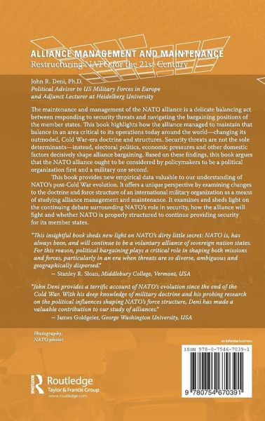 Providing new empirical data valuable to our understanding of NATO's post-Cold War evolution, this book offers a unique perspective on alliance management and maintenance. It sheds light on the continuing debate surrounding NATO's role in security, how the alliance will fight and whether NATO is properly structured to continue providing security for its member states.