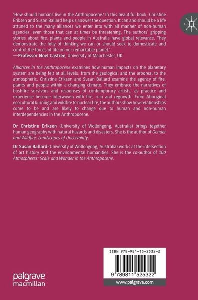 This book explores how fire, plants and people coexist in the Anthropocene. In a time of dramatic environmental transformation, the authors examine how human impacts on the planetary system are being felt at all levels from the geological and the arboreal to the atmospheric. The book brings together the disciplines of human geography and art history to examine fire-plant-people alliances and multispecies world-making. The authors listen carefully to the narratives of bushfire survivors. They embrace the responses of contemporary artists, as practice becomes interwoven with fire as well as ruin and regrowth. Through visual, textual and felt ways of being, the chapters illuminate, illustrate, impress and imprint the imagined and actual agency of plants and people within a changing climate - from Aboriginal ecocultural burning to nuclear fire. By holding grief and enacting hope, the book shows how relationships come to be and are likely to change due to the interdependencies of fire, plants and people in the Anthropocene.