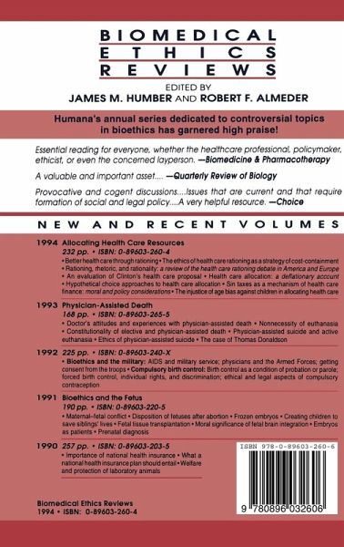 In ALLOCATING HEALTH CARE RESOURCES, leading authorities and researchers expose the basic philosophical, ethical, and economic issues underlying the current health care debate. The contributors wrestle with such complicated issues as whether it is ethical to ration health care, the morality of the worldwide bias against children in allocating health care resources, whether sin taxes can be defended morally, and how to achieve a just health care system. The book also includes an insightful analysis of the Clinton health care reform plan.