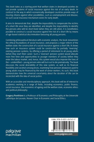 Combining philosophical literature with economic analysis, the book re-examines the ethical foundations of social insurance, and proposes a major reform of the welfare state: the construction of a social insurance against a short life. It shows how such an insurance system could be constructed by partially 'reversing' existing pension systems, by offering a period of retirement to all young adults before they start their career. Such a 'reversed' pension system would allocate more free time and opportunities to younger members of society before they enter the labour market, and, hence, this system would also improve the lives of the - unidentified - young persons who will turn out to die prematurely. The book discusses the social desirability of this new system, as well as its financial feasibility and societal consequences, examining how pension allowances paid to young adults may be financed by the work of senior workers. As such, this book demonstrates how the universal uncertainty about the duration of life can be reconciled with the idea of social justice.