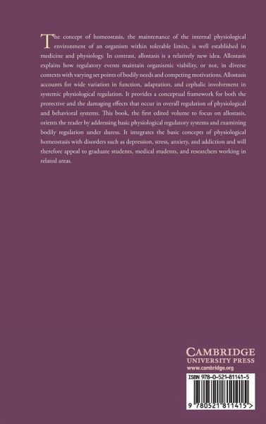 In contrast to homeostasis, allostasis refers to the relatively new idea of "viability through change." This book addresses basic physiological regulatory systems, and examines bodily regulation under duress. It integrates the basic concepts of physiological homeostasis with disorders such as depression, stress, anxiety and addiction. It will interest graduate students, medical students, and researchers in physiology, epidemiology, endocrinology, neuroendocrinology, neuroscience, and psychology.