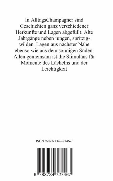 In AlltagsChampagner sind Geschichten ganz verschiedener Herkünfte und Lagen abgefüllt. Alte Jahrgänge neben jungen, spritzig-wilden. Lagen aus nächster Nähe ebenso wie aus dem sonnigen Süden. Allen gemeinsam ist die Stimulans für Momente des Lächelns und der Leichtigkeit.