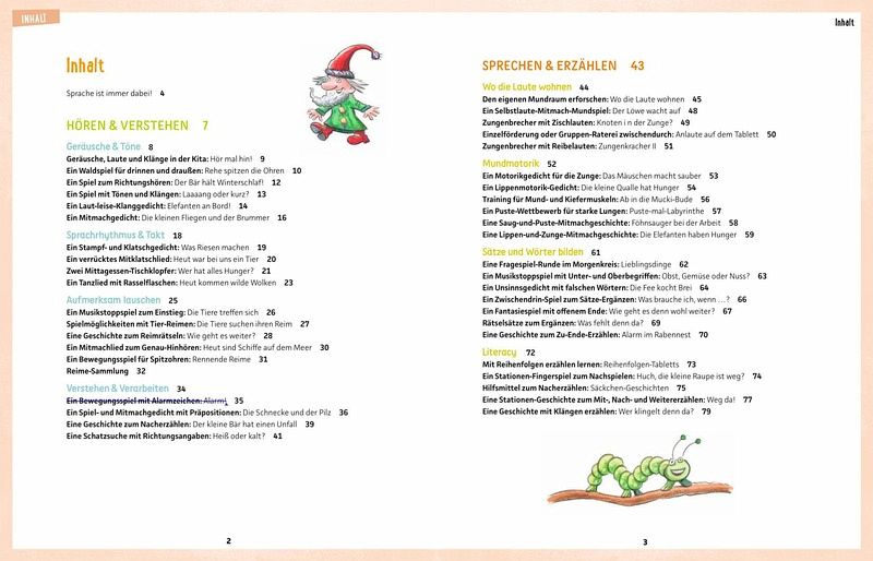 Mit diesem Buch begleiten Sie Ihre Kinder jeden Tag und bei zahlreichen Gelegenheiten beim Erleben, Erlernen und Verwenden von Sprache. Die Ideen, Lieder, Reime, Geschichten und Gedichte, Experimente und vieles mehr helfen Ihnen dabei, spielerisch und alltagsbegleitend die sprachliche Entwicklung der Kinder zu fördern.