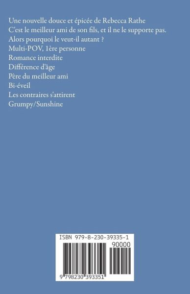 Une nouvelle douce et épicée de Rebecca Rathe C'est le meilleur ami de son fils, et il ne le supporte pas. Alors pourquoi le veut-il autant ? Multi-POV, 1ère personne Romance interdite Différence d'âge Père du meilleur ami Bi-éveil Les contraires s'attirent Grumpy/Sunshine