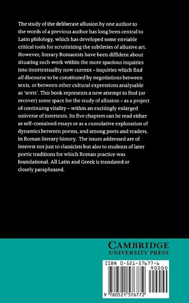 This fascinating 1998 book examines how the poets of classical Rome found artistic inspiration in the words and themes of their poetic predecessors. It combines traditional classical approaches with modern literary-theoretical devices.