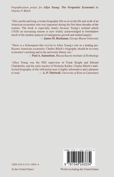 `This careful and long-overdue biography fills us in on the life and work of an American economist who was important during the first three decades of the century. The book is especially timely because Young's seminal article (1928) on increasing returns is now widely acknowledged to foreshadow much of the modern analysis of edogenous growth and related inquiry.' - James M. Buchanan, George Mason University Allyn Young was one of the most prominent and influential economists in the interwar period. His influence came largely through the work of his students: Frank Knight, Holbrook Working, Edward Chamberlin, Seymour Harris and others. He held professorships at Stanford, Cornell, and Harvard Universities among others. His public service included chief economic advisor to the American delegation at the Paris Peace Conference in 1919. This book provides the first full study of Allyn Young's life and work. It presents detailed expositions of his papers on demographics, value theory, depreciation, taxation, index number theory, and increasing returns. It is a straightforward analysis of the life and work of one of the most fascinating economists of this century.