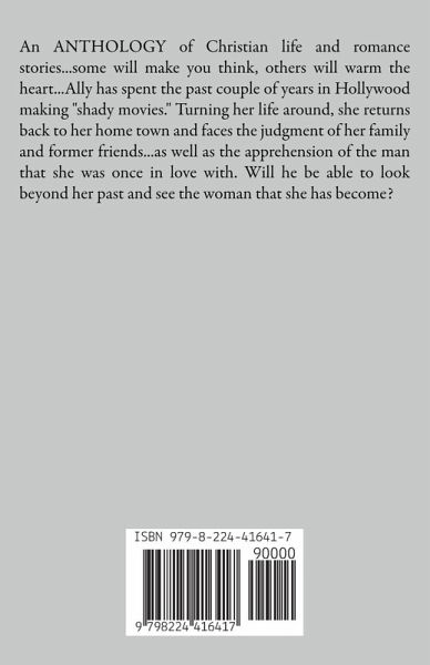 An ANTHOLOGY of Christian life and romance stories...some will make you think, others will warm the heart...Ally has spent the past couple of years in Hollywood making "shady movies." Turning her life around, she returns back to her home town and faces the judgment of her family and former friends...as well as the apprehension of the man that she was once in love with. Will he be able to look beyond her past and see the woman that she has become?