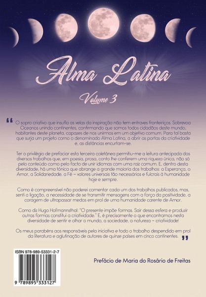 Nascida da semente de um sonho, o volume 3 desta obra é já uma frondosa árvore com frutos de amor e esperança. Onde cada autor, nela presente, é raiz que se enlaça e a fortalece, para além do visível e para lá da geometria do mundo. Esta obra é um encontro de caminhos, vivências, sonhos e emoções; uma viagem às profundezas de uma alma una: a Alma Latina.