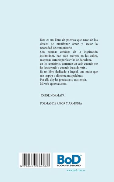 Este es un libro de poemas que nace de los deseos de manifestar amor y saciar la necesidad de comunicarlo. Son poemas crecidos de la inspiración instantánea, han sido escritos en las calles, mientras camino por las vías de Barcelona, en los semáforos, tomando un café, cuando me he despertado o cuando estaba en trance de descansar. Es un libro dedicado a Ingrid, una musa que me inspira y alimenta mis palabras. Por ello doy las gracias a su existencia y a su presencia. Es un libro escrito a gran velocidad, ya que en pocos días pude escribir cerca de 50 poemas. Daba la sensación de que mi corazón estaba repleto de sentimientos que deseaban abandonar el nido y recorrer el camino de las palabras y los versos y así plasmarse en realidad. La creatividad es algo mágico y debería entenderse como un don que necesita expresarse a través de nuestros sentidos con tal de generar armonía, te libera de la confusión y te adentra en la magia de tu yo íntimo, la creatividad es fuente misma de vida y fuente de armonía. Todos la tenemos, sólo necesitas las herramientas de búsqueda adecuadas.
