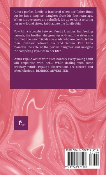 Alma's perfect family is fractured when her father finds out he has a long-lost daughter from his first marriage. When his overtures are rebuffed, it's up to Alma to bring her new-found sister, Sabiha, into the family fold. Now Alma is caught between family loyalties: her feuding parents, the brother she grew up with and the sister she just met, the new friends she made who are conflicted in their loyalties between her and Sabiha. Can Alma maintain the role of the perfect daughter and navigate the competing loyalties in her life? 'Amra Pajali¿ writes with such honesty every young adult will empathise with her... While dealing with some ordinary "stuff" Pajalic's observations are sincere and often hilarious.' BENDIGO ADVERTISER