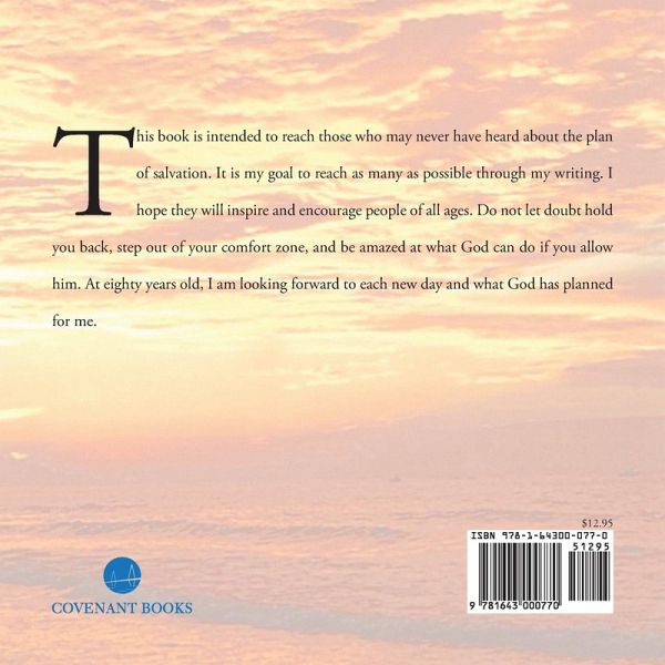 This book is intended to reach those who may never have heard about the plan of salvation. It is my goal to reach as many as possible through my writing. I hope they will inspire and encourage people of all ages. Do not let doubt hold you back, step out of your comfort zone, and be amazed at what God can do if you allow him. At eighty years old, I am looking forward to each new day and what God has planned for me.