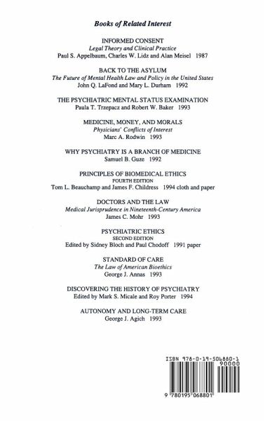 Doubts about the reality of mental illness and the benefits of psychiatric treatment helped foment a revolution in the law's attitude toward mental disorders over the last 25 years. Legal reformers pushed for laws to make it more difficult to hospitalize and treat people with mental illness, and easier to punish them when they committed criminal acts. Advocates of reform promised vast changes in how our society deals with the mentally ill; opponents warily predicted chaos and mass suffering. Now, with the tide of reform ebbing, Paul Appelbaum examines what these changes have wrought. The message emerging from his careful review is a surprising one: less has changed than almost anyone predicted. When the law gets in the way of commonsense beliefs about the need to treat serious mental illness, it is often put aside. Judges, lawyers, mental health professionals, family members, and the general public collaborate in fashioning an extra-legal process to accomplish what they think is fair for persons with mental illness. Appelbaum demonstrates this thesis in analyses of four of the most important reforms in mental health law over the past two decades: involuntary hospitalization, liability of professionals for violent acts committed by their patients, the right to refuse treatment, and the insanity defense. This timely and important work will inform and enlighten the debate about mental health law and its implications and consequences. The book will be essential for psychiatrists and other mental health professionals, lawyers, and all those concerned with our policies toward people with mental illness.