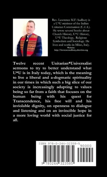 Twelve recent Unitarian*Universalist sermons to try to better understand what U*U is in Italy today, which is the meaning to live a liberal and a-dogmatic spirituality in our times in which such a big slice of our society is increasingly adapting to values being so far from a faith that focuses on the human being with his quest for Transcendence, his free will and his inviolable dignity, on openness to dialogue and listening and on an invincible hope in a more loving world with social justice for all.