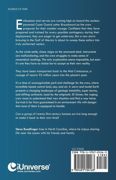 Enthusiasm and nerves are running high on board the nuclear-powered Coast Guard cutter Broadsword as the crew prepares for their maiden voyage. Confident that they have prepared and trained for every possible contingency during their deployment, they are eager to get underway. But a new storm brewing in the Gulf of Mexico is about to sweep these sailors into truly uncharted waters. As the winds settle, chaos reigns on the command deck. Instruments are malfunctioning, and the crew struggles to make sense of nonsensical readings. The only explanation seems impossible, but soon it?s one they have no choice but to accept as their new reality. They have been transported back to the Mid-Cretaceous, a voyage of nearly 92 million years into the planet?s past. It?s a time of unrecognizable peril and challenge for the crew, where incredible beasts control land, sea, and air. A warm and humid Earth presents a changing landscape of geologic instability, super storms, and shifting continents. Lead by the enigmatic JD Stoner, the ragtag crew races to understand their new situation and find a way home. Survival is far from guaranteed in an environment rife with danger that none of them is equipped to handle. Can a group of twenty-first-century humans survive long enough to make it back to their own time?